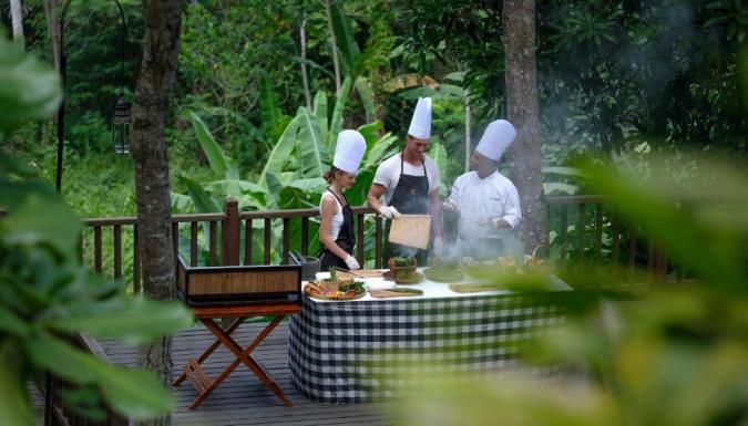 Гости могут насладиться блюдами тайской, индонезийской и западной кухни в ресторане. Kayumanis Ubud может организовать другие мероприятия для улучшения впечатлений гостей, такие как пикник на берегу реки Аюнг, кулинарный класс, йога, треккинг, велоспорт и многое другое. За некоторые мероприятия взимается дополнительная плата.