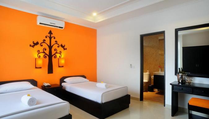 Отель Dewi Sri находится в 600 метрах от пляжа Кута, в 1,5 км от аквапарка аттракционов «Вотербом Бали» и в 15 минутах езды от Международного аэропорта Нгурах-Рай.