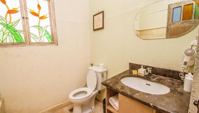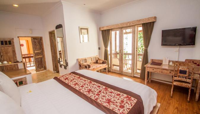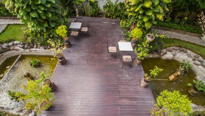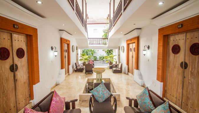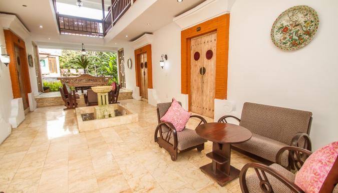 Интерьер 4-звездочного бутик-отеля Abian Biu Mansion, расположенного в Умаласе, оформлен в перанаканском стиле. Отель находится всего в 7 минутах езды от пляжей Петитенгет и Семиньяк.