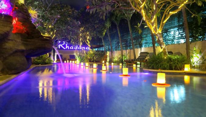Отель Rhadana с рестораном, в котором подается завтрак «шведский стол» расположен в 10 минутах езды от пляжа Кута, торговых центров Discovery и Bali Galeria, иных развлекательных мест города Семиньяка.