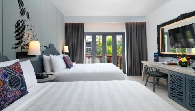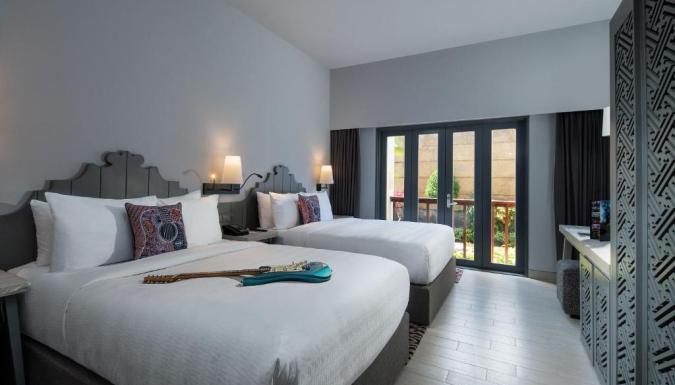 Отель Hard Rock Bali, оформленный в стиле рок-н-ролл, расположен рядом с пляжем Кута. К услугам гостей самый большой на Бали открытый бассейн свободной формы с песчаным островком, скалодром, спа-центр, рестораны и бесплатная парковка. На всей территории работает бесплатный Wi-Fi.