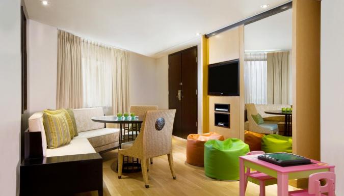 В пляжном баре-ресторане Ikan предлагаются блюда-барбекю из морепродуктов. Ресторан Prego специализируется на итальянской кухне. В ресторане Hamabe подаются традиционные японские блюда. Изысканные блюда китайской, индийской, средиземноморской и западной кухонь можно заказать в ресторане Seasonal Tastes. В тапас-баре Velada гостей ждут аппетитные закуски-тапас. В лаундж-баре Kites представлен широкий ассортимент прохладительных напитков, легких закусок и десертов. Для тех, кто следит за своим здоровьем, за дополнительную плату накрывается завтрак «шведский стол» с питательными блюдами по системе SuperFoodsRX.