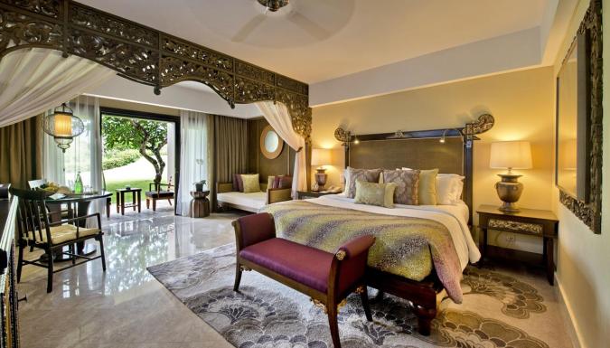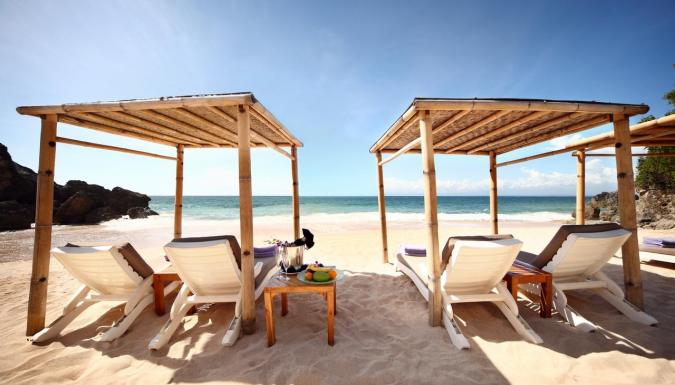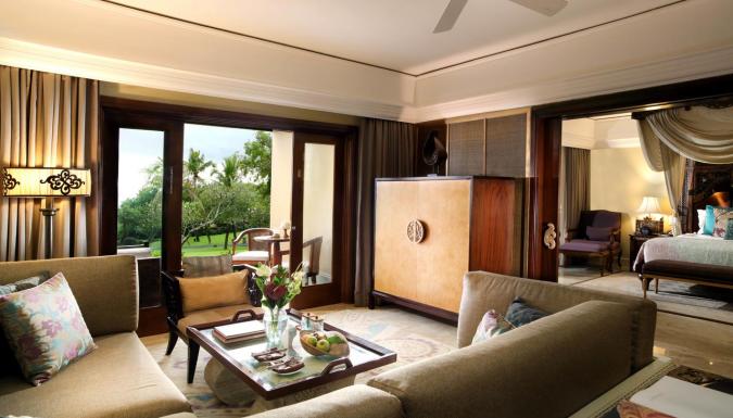 Отель расположен на территории тропического сада площадью 90 гектаров на вершине скалы, в 35 метрах над заливом Джимбаран.