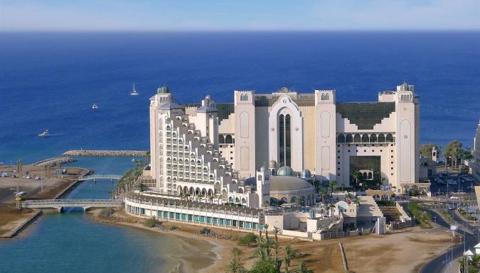Отель открыт в 1999 г. Представляет собой целый городок, состоящий из гостиниц, бизнес-центра, лечебного центра, торговой галереи с ресторанами и барами. Напоминает восточный дворец из сказки "1000 и 1 ночь". В отеле имеется 3 отдельных корпуса на 468 номеров. HERODS PALACE - 300 номеров. Все комнаты с балконом и видом на море. Большой бассейн, бассейн для детей, торговый центр с модными магазинами, рестораны и бары в различных стилях (африканский, колониальный, средиземноморский, гриль). Для гостей отеля существует возможность пользоваться СПА HERODS VITALIS. В отеле развлечения для детей и взрослых в течение всего дня и вечера, всевозможные виды водного спорта, рыбалка. HERODS VITALIS SPA расположен в 14-тиэтажном здании. 64 шикарных номера, СПА. В каждом номере балкон, обращенный на море, джакузи, чайный бар, большой телевизор, халат, тапочки. Современный тренажерный зал, студии аэробики, гимнастический зал с витражными окнами, обращенными на море. Сауна влажная и сухая, термический бассейн с минеральными солями, бассейн с гидромассажем, бассейн с каскадным душем, салон красоты, 43 кабинета для всевозможных процедур, бар фруктовых коктейлей. В HERODS VITALIS SPA имеется ресторан здоровой пищи. HERODS FORUM - центр бизнеса, конгрессов, семинаров и конференций. В этом блоке 104 номера. Залы для заседаний, бизнес-клубы и все условия для работы бизнесменов. Все гости этой части отеля имеют возможность пользоваться СПА HERODS VITALIS (за отдельную плату). Номера: standart rooms; deluxe rooms: 2-10 этажи с балконом, с видом на море; Sky Towers rooms: 11-12 этажи с балконом, с видом на море; cadium suite: спальня + гостиная, джакузи в ванной; casstle suite: большая спальня + большая гостиная, джакузи в ванной; presidential suite: 2 этажа, спальня + гостиная, большой балкон, джакузи в ванной.