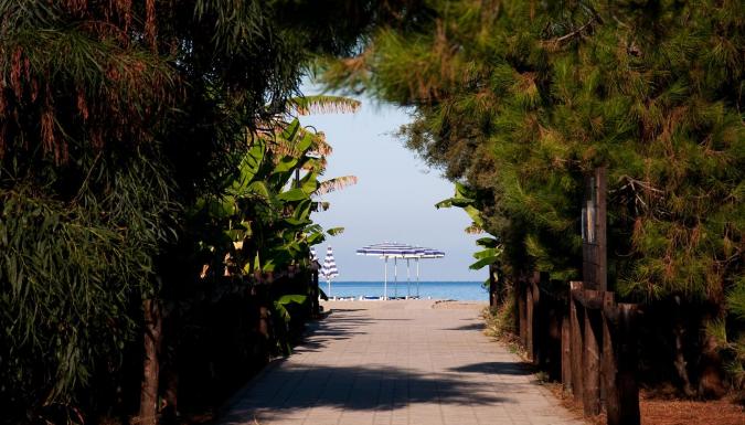 Собственный песчано-галечный, в 300 м от отеля (через парк). Пляжные полотенца - депозит 11 € + доплата за пользование 16 € в неделю с ежедневной заменой; 1 зонтик + 2 шезлонга на номер - бесплатно.