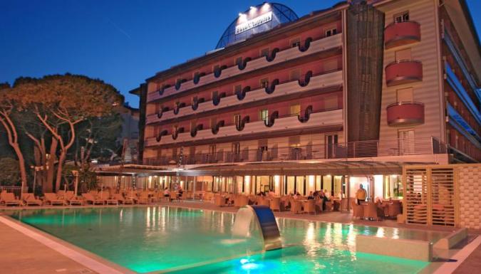 Современный стиль, просторные холлы, салоны с видом на море с уютными креслами, бар на террасе, ресторан с террасой на открытом воздухе. Рекомендуем для любителей вкусно и много поесть: главное достоинство отеля — богатый шведский стол на завтрак, обед и ужин, включая большой выбор овощей, закусок, фруктов, основных блюд итальянской и международной кухни. Раз в неделю - гала ужин при свечах и живая музыка. Небольшой сад с лужайками, 2 больших бассейна для взрослых и детей. Частный пляж с пляжным оборудованием. Парковка.