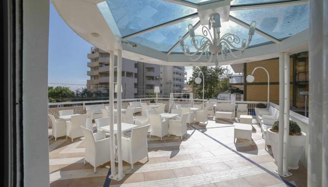 Круглосуточный ресепшен и бар, TV, веранда, лифт, парковка, гараж (за доп. плату), wifi. На крыше отеля расположен большой бассейн. В летний период времени 2 раза в неделю устраиваются типичные итальянские вечера.
