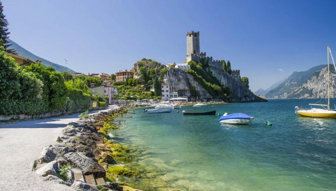 Сегодняшний день предлагаем провести на роскошном итальянском озере Гарда, только смотреть мы будем не знакомые уже почти всем города в южной части озера, а его северную, узкую часть, природу которой можно сравнить со знаменитыми фьордами. Точкой нашей поездки станет городок Мальчезине, символом которого является замок Скалигеров, стоящий на отвесной скале над озером.