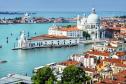 Венеция. Подобного города нет на всей планете. Построенный на сваях, город словно парит над лагуной в прозрачном воздухе, наполненным солнечным светом или проступает через мелкую сетку дождя, как гравюра старого мастера. Архитектурные творения, невероятным образом созданные многими поколениями на труднейшей для застройки местности, в созвучии с водой каналов и светом, образуют единственную в своем роде гармонию. Этот город смело можно назвать город - музей. Тут на каждом шагу расположены шедевры архитектуры прошлых веков, памятники и другие достопримечательности. Например, знаменитые мосты: "Золотой мост", "Мост вздохов" и "Мост Менял", здание Старых и Новых Прокураций, дворец Венир-де-Леони, дворец Дожей, библиотека, Башня Часов, колокольня Кампаниле со смотровой площадкой, грандиозный комплекс Арсенала, собор Санта-Мария-делла-Салюте, базилика Фрари, торговая улица Мерчерия. Большинство венецианских улочек-каналов так узки, что в стены противоположных домов можно легко упереться руками, при этом сами здания достигают высоты 7 этажей. - 3