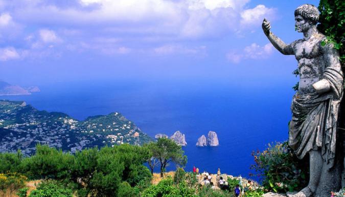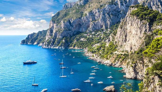 Переехав в город Сорренто (100 км), мы начнем наше маленькое путешествие с водной переправы на пароме (35 мин), прибудем в порт Марина Гранде на острове Капри и на фуникулере поднимемся в город Капри. Пешеходная экскурсия с осмотром основных достопримечательностей и остановкой на панорамных площадках городка, откуда открываются живописные виды на остров. Мы увидим каменные колоссы Фаральони, выступившие из морских глубин – это три рифа, которые стали символом острова Капри.