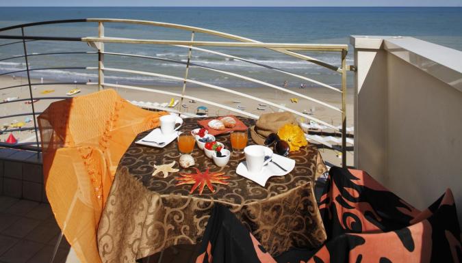 Четырехэтажный отель вблизи моря.