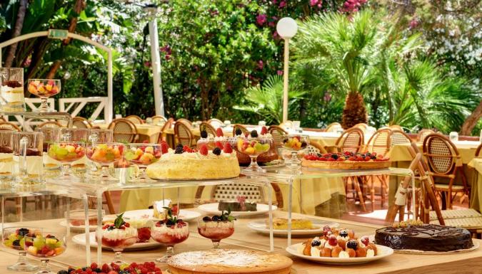 В полупансион включен «шведский стол» в ресторане, где подают сардинские и интернациональные блюда. Помимо этого, в отеле работают пиццерия, ресторан у бассейна и 6 баров.
