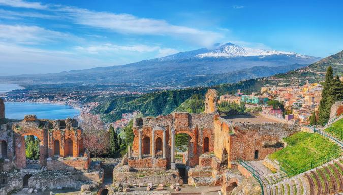 Переезд в Таормину – один из самых живописных городов Сицилии, расположившийся на склоне возвышающейся над морем горы. Обзорная экскурсия по городу: Античный театр, сады Виллы Комунале, улица Корсо Умберто, Соборная площадь, на которой находится символ города - фонтан с коронованным кентавром и др.