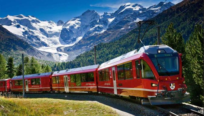 Настоящая экскурсия по одному из самых труднодоступных уголков Альп. Поезд оснащён вагонами с панорамным остеклением, позволяющим туристам любоваться ни с чем несравнимыми красотами. Поезд отправляется со станции Тирано, высота над уровнем моря 430 метров, и достигает своей высшей точки на вокзале Оспицио Бернина на высоте 2,256 метров, около Лаго-Бьянко. Поезд проезжает над старинным спиральным виадуком Брузио, пересекает Поскьяво с его благородными старинными особняками и останавливается на станции Альп Грюм (2091 метров над уровнем моря). Здесь находится мощный ледник Мортерач и отсюда открывается великолепный вид на горный массив Бернина. Конечная точка 2,5-часового путешествия c захватывающими дух альпийскими видами – швейцарский курорт Санкт-Мориц – место проведения двух олимпийских игр и родина бобслея. Город живописно расположился на берегу одноименного озера.