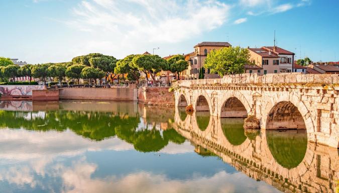 В конце экскурсии, пройдя по мосту императора Тиберия, мы окажемся в районе Сан Джулиано, поговорим о великом режиссере Федерико Феллини, посмотрим фрески «муралес», посвященные сюжетам фильмов великого маэстро.