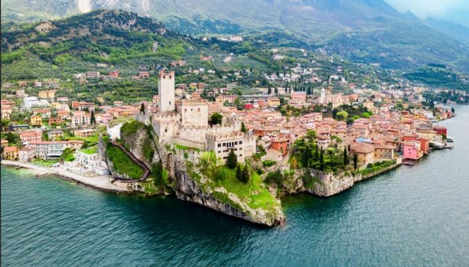 Сегодняшний день предлагаем провести на роскошном итальянском озере Гарда, только смотреть мы будем не знакомые уже почти всем города в южной части озера, а его северную, узкую часть, природу которой можно сравнить со знаменитыми фьордами. Точкой нашей поездки станет городок Мальчезине, символом которого является замок Скалигеров, стоящий на отвесной скале над озером.