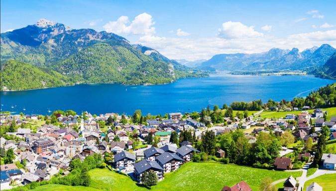 Далее сделаем остановку в фотогеничном городке Санкт-Гильген на озере Вольфгангзее. Городок может похвастаться не только открыточными пейзажами, но и домом, где родилась мать Моцарта, а также знаменитой канатной дорогой, проложенной на высоте 1500 м.