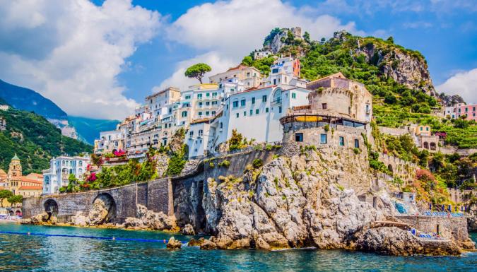 Этот райский уголок окружен горами Латтари. Пронзительной красоты море, уединенные бухты среди скал, лимонные сады и оливковые плантации, террасами спускающиеся к воде, улочки-лесенки, древние церквушки и живописные домики словно приклеенные к горным склонам. Этот город украдет Ваше сердце, Вы отдохнете душой и можете себя ущипнуть, это действительно реальность, а не Ваш прекрасный сон.