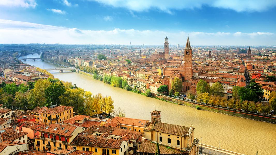 Верона – город огромного обаяния и романтизма. Приехав в Верону, невозможно не обратить внимание на уникальность и красоту улиц и обилие самых больших и ярких в Италии площадей. Здесь можно увидеть места, связанные с Данте Алигьери, прогуляться по улочкам, помнящим тяжелую поступь семьи Скалигеров, и посетить дворик дома Джульетты, где, под знаменитым балконом, на месте юного Ромео, уже несколько поколений влюбленных загадывают желания и претворяют их в жизнь. Город приглашает всех желающих совершить прогулку по воспетым поэтами набережным реки Адидже и познакомиться с его римским прошлым и памятниками, которые 2000 лет напоминают нам о величии Римской империи. В Вероне находится один из немногих уцелевших амфитеатров - Арена-ди-Верона, место гладиаторских боев в прошлом и великолепных оперных постановок в настоящем.