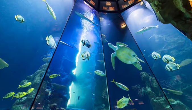 Посещение «Дома моря» на 1-5 этажах оборудованы многочисленные террариумы и аквариумы, а также зона тропического леса (Tropenhaus), на 7 и 8 этажах находится постоянная экспозиция, с помощью которой вы узнаете много чего интересного о самом здании — башне. В конце осмотра вы попадете на смотровую площадку, с которой открывается прекрасная панорама города.