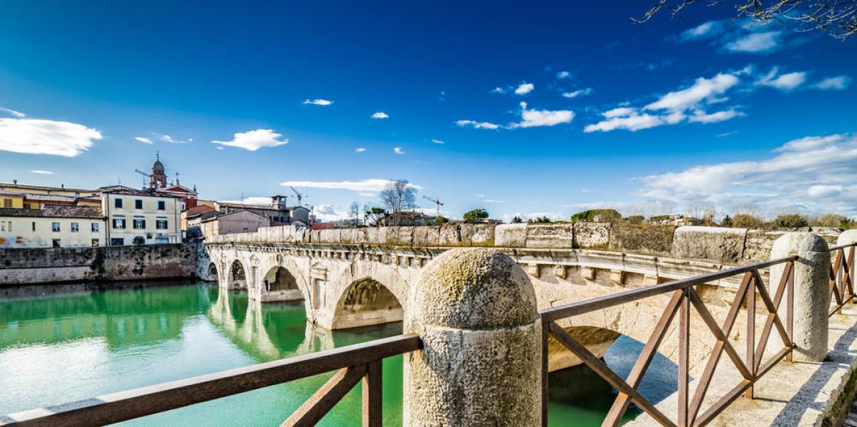 В конце экскурсии, пройдя по мосту императора Тиберия, мы окажемся в районе Сан Джулиано, поговорим о великом режиссере Федерико Феллини, посмотрим фрески «муралес», посвященные сюжетам фильмов великого маэстро.