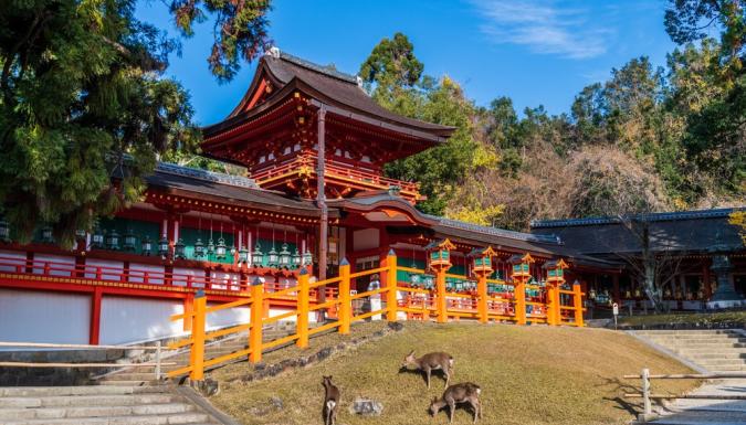 Святилище Касуга Тайся - важнейший синтоистский храм Японии. Храм посвящен божеству горы Микаси, охранявшему Нару от напастей. Известен своими фонарями, которые были пожертвованы прихожанами.