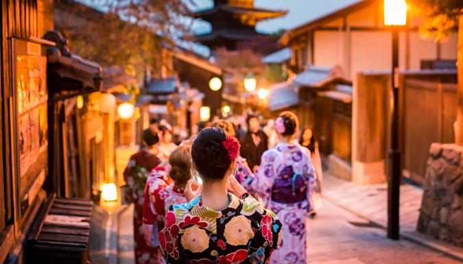 Район гейш "Гион" с аутентичной атмосферой времени, когда гейши развлекали гостей чаепитием, танцами, пением, чтением литературы и беседами.