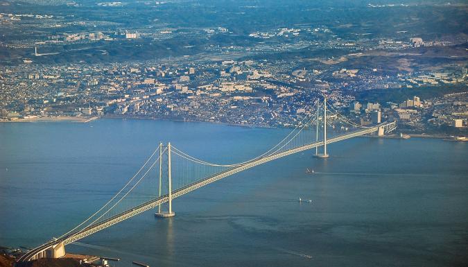 Мост Акаси-Кайкё связывает остров Хонсю в районе города Кобе с островом Авадзи близ одноименного населенного пункта. За свои размеры он был удостоен упоминания в книге рекордов Гиннесса как самый высокий (его пилоны достигают высоты 300 метров) и самый длинный подвесной мост в мире (длина срединного пролета - 1911 метров, его общая длина 3911 метров). Идея строительства моста появилась еще в 50-е годы XX века, но воплотить ее удалось лишь в конце столетия. Мост стал альтернативой опасной паромной переправе, работающей и по сей день. Посмотреть на это чудо инженерной мысли можно с променада, воздвигнутого именно для этого.