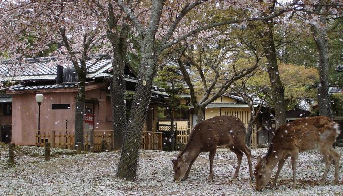 Нара - город в центральной части Японии, который в свое время являлся столицей государства. На его территории сохранилось немало культурных сооружений, среди которых храм Тодай-дзи – крупнейшее деревянное строение в мире, а также один из самых древних буддийских храмов Японии. Его имя означает «Великий восточный храм», и сегодня это главное святилище Нары. Помимо своих размеров, он знаменит тем, что в нем хранится огромная статуя Будды, выплавленная более тысячи лет назад и поражающая своими размерами: высота с пьедесталом - 22 метра, а вес – 500 тонн. Тодай-дзи расположен в центральном общественном парке города, мировую известность которому принесли свободно бродящие по всей территории дикие олени. Они здесь повсюду, их насчитывают более 1200. Животные считаются символом города и природным достоянием. Согласно легенде, олени - это посланники богов, защищающие страну. - 12