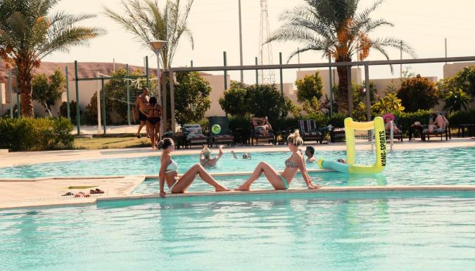 Бассейн, зонты от солнца, шезлонги/пляжные кресла, полотенца для бассейна/пляжа, игрушки для бассейна.