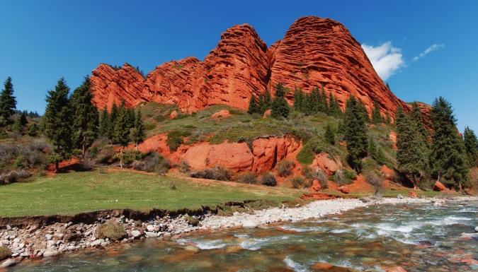 Переезд на каньон "Сказка" — одно из самых красивых и волшебных мест Кыргызстана. Его длина составляет около 2 километров, а глубина достигает до 200 метров. Особенностью каньона являются его причудливые формы: из-за ветра, дождей и солнечного света камни приобретали необычные очертания и текстуры. Настоящие марсианские пейзажи!