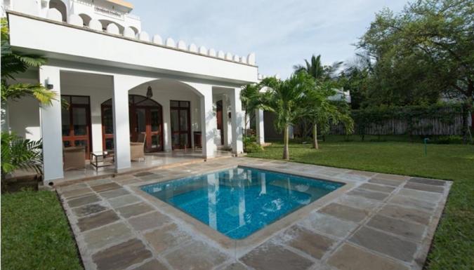 3 Bedroom Villa - 312м2. Кровати 1 king, 1 queen, 1 twin. Вход через резную дверь в стиле Ламу с фонтаном на фоне высокой стены, облицованной кораллами, с декоративной решеткой. Высота и пространство обеспечивают свет и вентиляцию всей виллы. Три спальни на первом этаже включают главную спальню, спальню с кроватью размера «queen-size» и спальню с двумя отдельными ванными комнатами, с собственными балконами, большими окнами и французскими дверями. Терраса на крыше с баром и шезлонгами обеспечивает дополнительное частное открытое пространство с фантастическим видом на Индийский океан, Wifi, кондиционер, москитная сетка, кухня, стиральная машина, телефон.