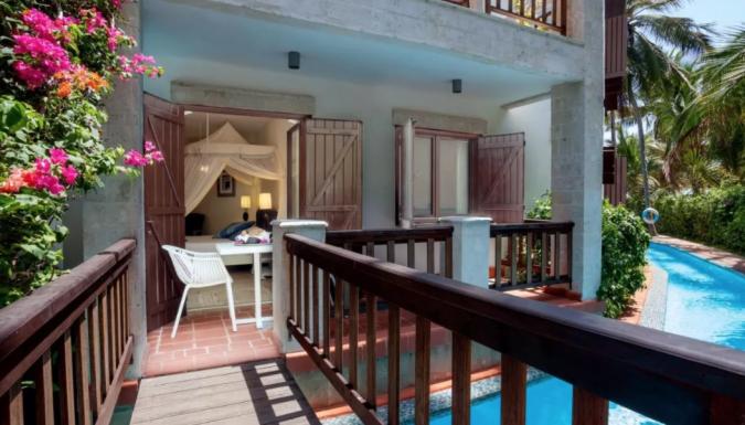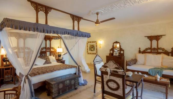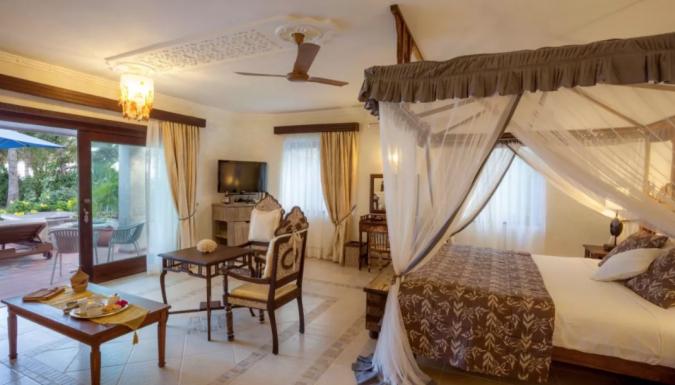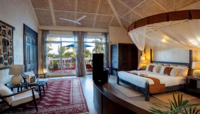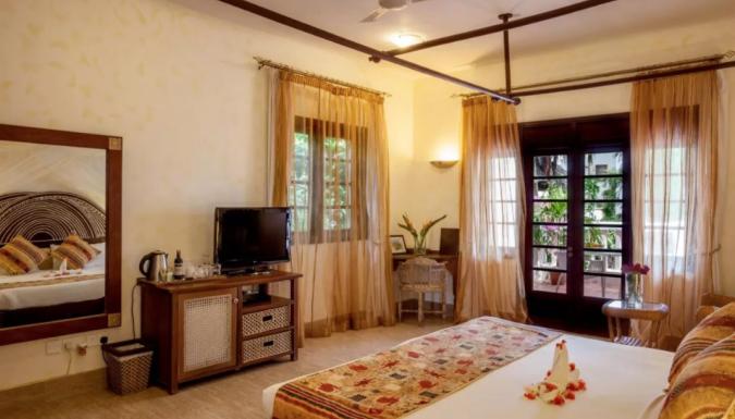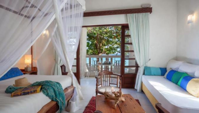 Двухместный номер Делюкс с 1 кроватью и видом на океан - 31м2, 1 очень большая двуспальная кровать. Роскошный номер с кондиционером и гостиной зоной с телевизором со спутниковыми каналами и док-станцией для iPod. С балкона открывается вид на Индийский океан. В собственной ванной комнате предоставляются банные халаты, тапочки, фен и бесплатные туалетно-косметические принадлежности;