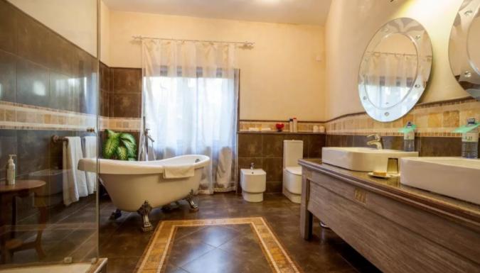 - ванная комната укомплектована банными халатами, тапочками и бесплатными туалетно-косметическими.