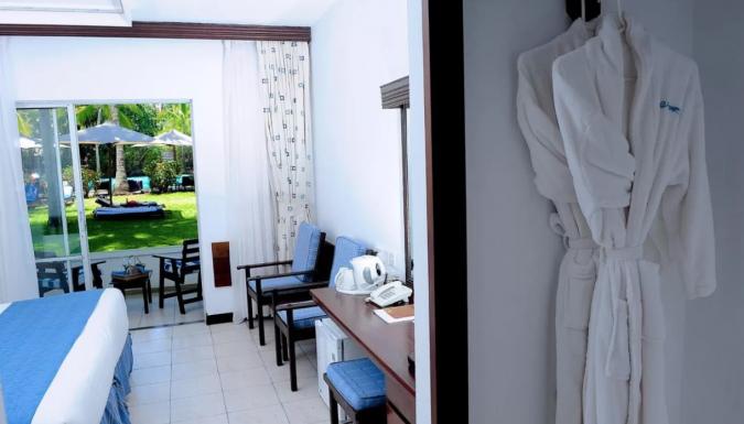 - номера в курортном отеле Voyager Beach оформлены в синих и белых тонах и оборудованы кондиционерами.