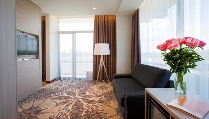 Отель построен в 1982 году, частично реконструирован в 1998 году. Для гостей на территории отеля расположены: парковка, услуги концертного - кинозала вместимостью до 300 человек, сейф, коференц - залы вместимостью до 100 человек, бизнес-центр, крытый бассейн и бассейн под открытым небом с минеральной водой +29°C. Теннисные корты - крытый и уличный. Бары. Бильярд, кегельбан, сауна, массаж, тренажёрный зал, солярий, парикмахерская, барбекью, детская площадка, услуги няни, лифты.