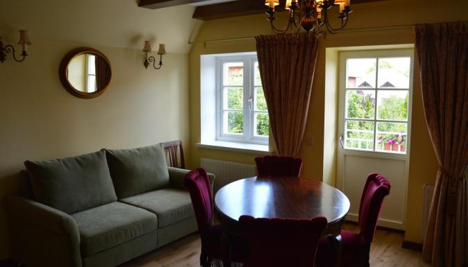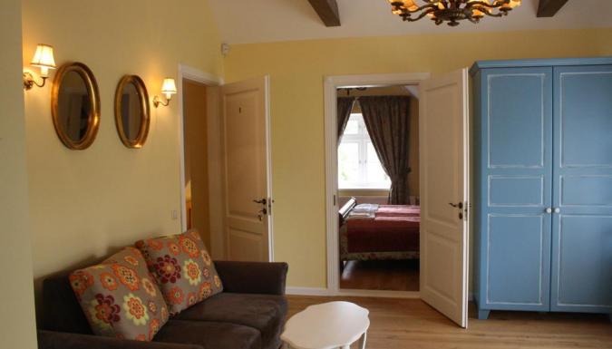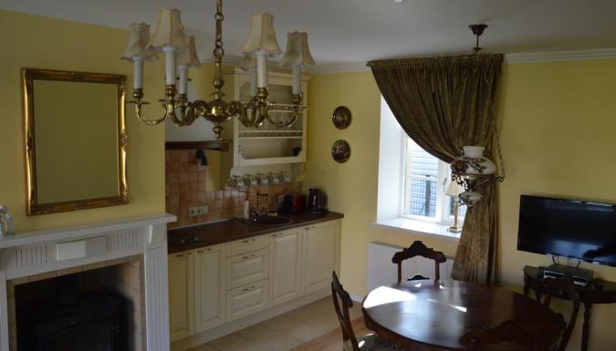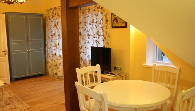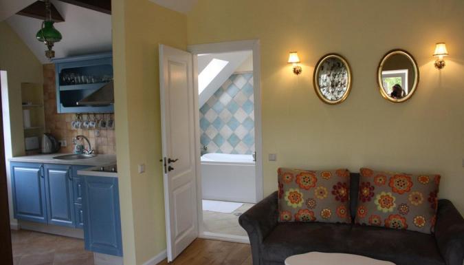 - мини-кухня (холодильник, эл.чайник, кухонные принадлежности)