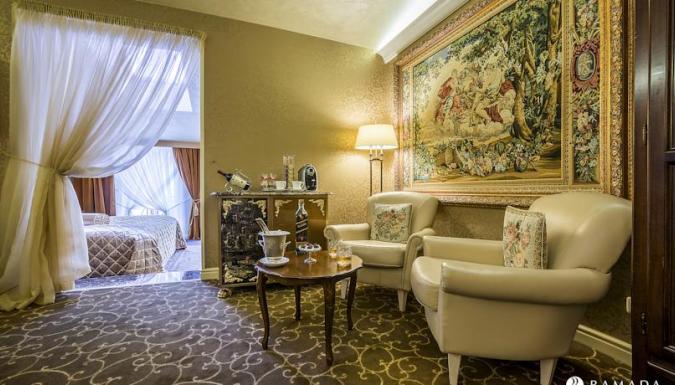 Звукоизолированные номера отеля Ramada оформлены в традиционном стиле, характерном для начала XIX века. В распоряжении гостей сейф, кофемашина, мини-бар и собственная ванная комната (в некоторых ванных комнатах установлена отдельно стоящая ванна).