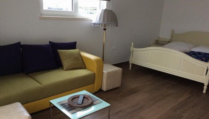 апартамент :предназначен для 3-х или 4 гостейВ номере: Двуспальная кровать и раскладывающийся диван, санузел с душевой кабиной, эл.чайник, эл.плита, микроволновая печь, набор посуды, TV, Wi-Fi