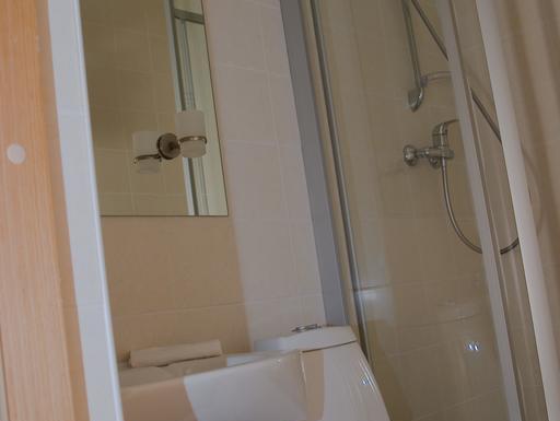 - Маленькая ванная комната, в душе занавеска