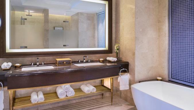 В ресторане L'Orangerie с открытой кухней сервируют завтрак «шведский стол». В ресторане Kayu Puti подают блюда над водой. В баре St. Regis можно заказать спиртные напитки и вина. В кафе The Drawing Room и Gourmand Deli гостям предложат выпечку и кофе.
