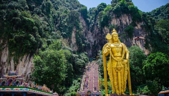 Мистические пещеры Бату являются природной достопримечательностью Малайзии и находятся в 13 километрах от Куала Лумпура. Это одна из самых популярных индуистских святынь за пределами Индии. Всего насчитывается два десятка пещер. На фоне величественных гор поражает воображение золотая статуя индусского Бога Муругана - вечного борца за мир и справедливость. Построенная в 2006 году, статуя высотой 42,7 м является самой крупной в мире. Поднявшись на 272 ступеньки, Вы окажетесь в Пещере Храма, наиболее посещаемой паломниками и туристами. Отдельным развлечением на пути в пещеру являются обезьяны, кормление которых всегда вызывает море восторга у посетителей храма.