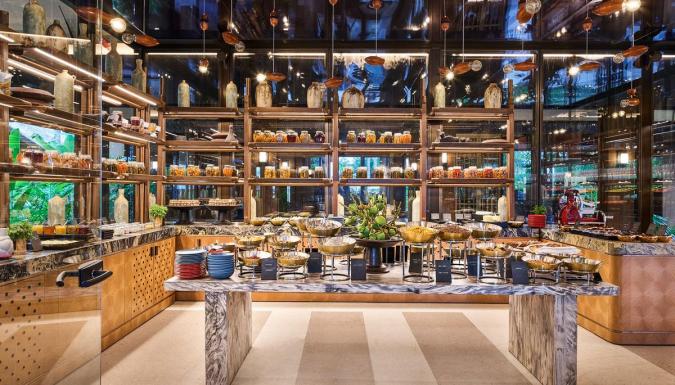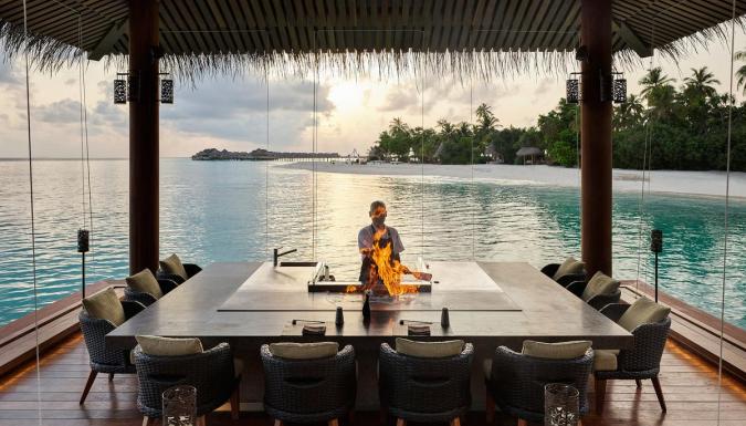 В 4 ресторанах курортного отеля можно отведать авторские блюда в стиле фьюжн. В меню ресторана Vandhoo представлены блюда Юго-Восточной Азии, Китая, Средиземноморья и стран Левант (Сирии, Палестины и Ливана).