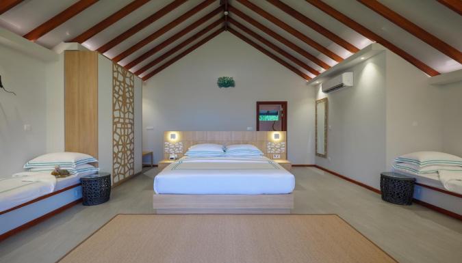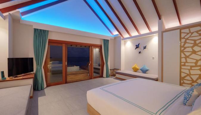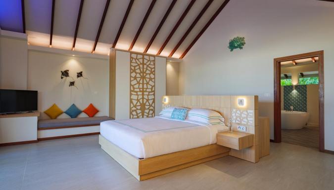 Кондиционер, потолочный вентилятор, зона для отдыха, мини холодильник, бесплатный набор для приготовления чая и кофе, IDD телефон, телевизор, бесплатный высокоскоростной интернет, сейф, ванная комната частично на открытом воздухе с ванной и душевой кабиной, двойная раковина, туалетные принадлежности, фен, халаты, ночное обслуживание и бесплатное использование шезлонгов на пляже, около бассейна и пляжных полотенец. Солнцезащитный крем предоставляется бесплатно, также может быть приобретен за дополнительную плату в бутике Azora.