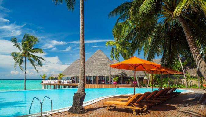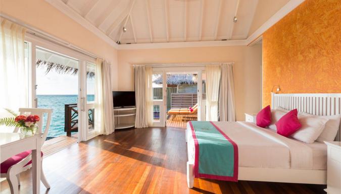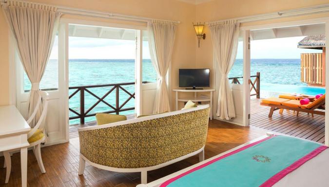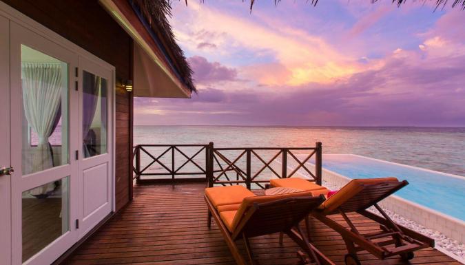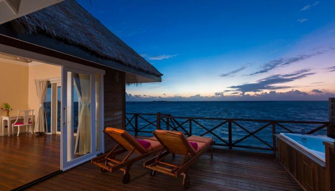 Курортный отель Sun Aqua Vilu Reef предлагает спокойный пляжный отдых на одной из его просторных вилл.
