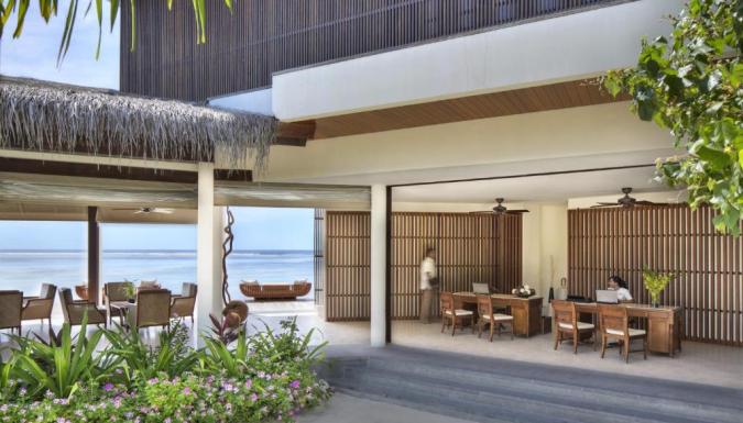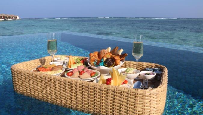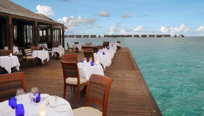 В пляжном баре, частично погруженном в бассейн, подают легкие блюда и коктейли в островном стиле. В ресторанах The Dining Room, Sunset Grill и Falhumaa подают разнообразные изысканные блюда интернациональной кухни.