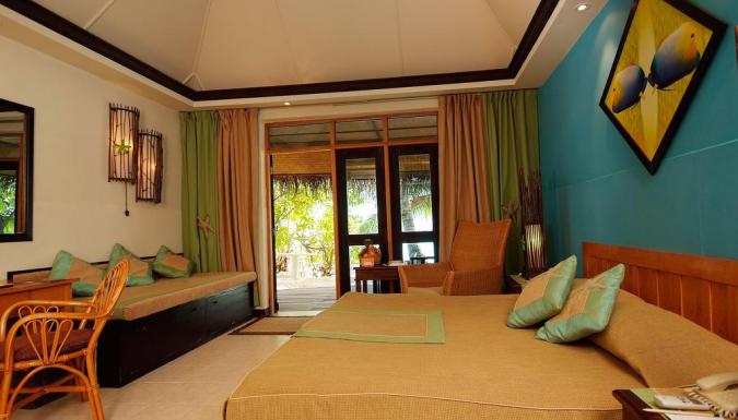 46 beach bungalows (38 м2, sea view, спальня с гостиной зоной, ванная комната – душ; макс. 3 чел.) - отдельно стоящие бунгало.
