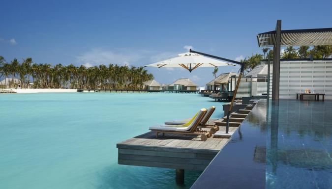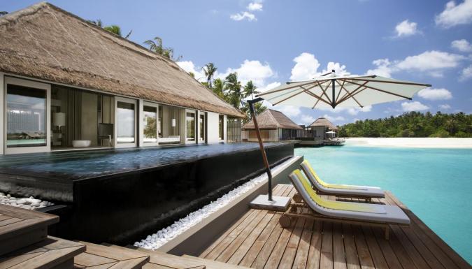 15 Water Villa (240 м2; макс. 2 чел.). Водные виллы, идеально подходящие для романтического отдыха. Просторная спальня, ванная комната с ванной и душем. Терраса с зоной отдыха, бассейном-каскадом (длина – 12.5 м), душем на открытом воздухе, обеденной зоной и прямым спуском в океан. Часть вилл выходит на сторону лагуны, часть – на океан, риф.