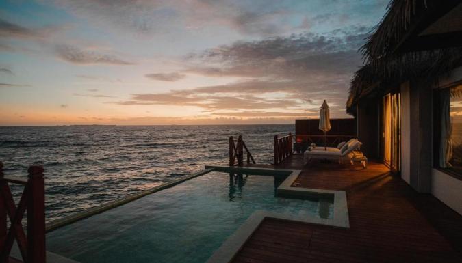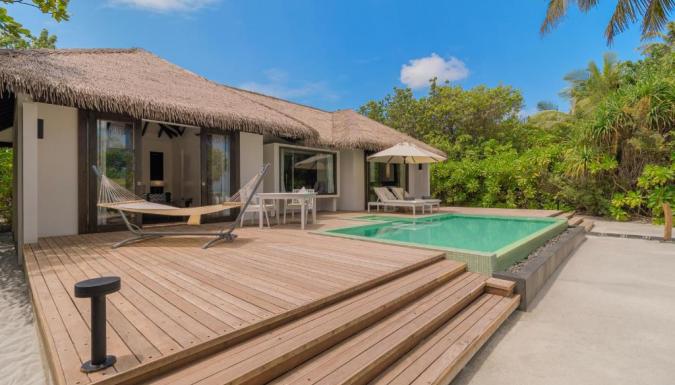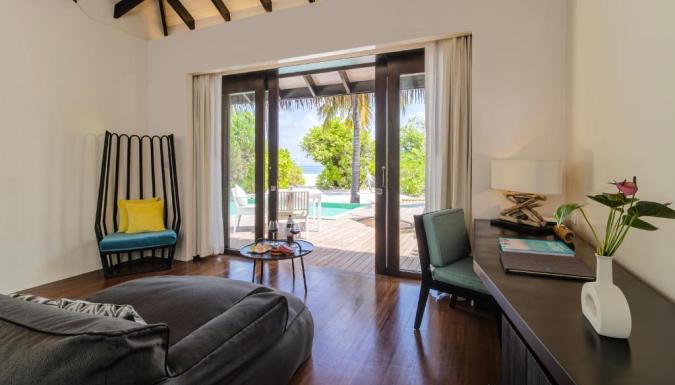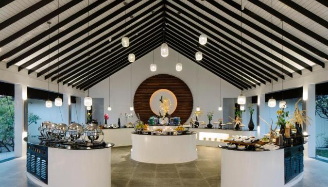 Отель на острове, окруженном белоснежным пляжем и коралловым рифом, к размещению предлагаются береговые и надводные виллы, часть из которых имеет свой бассейн. Здесь можно заняться дайвингом и снорклингом, водными развлечениями, посетить SPA-салон.
