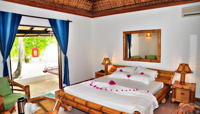 Отель расположен в самом сердце атолла Южный Ари. Остров окружен белым песчаным пляжем, лагуна с кристально чистой водой, домашний риф с живыми кораллами отлично подходит для подводного плавания. К услугам гостей принадлежностями для барбекю, спа- и фитнес-центр, терраса для загара, ресторан или бар.